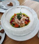 Какая здесь подача блюд!!! Я это стеклянное блюдо рассматривала дольше, чем ела) Наверное потому что съела очень быстро , так как очень вкусно! Обслуживание, кухня и конечно вид , все на очень высоком уровне, спасибо!