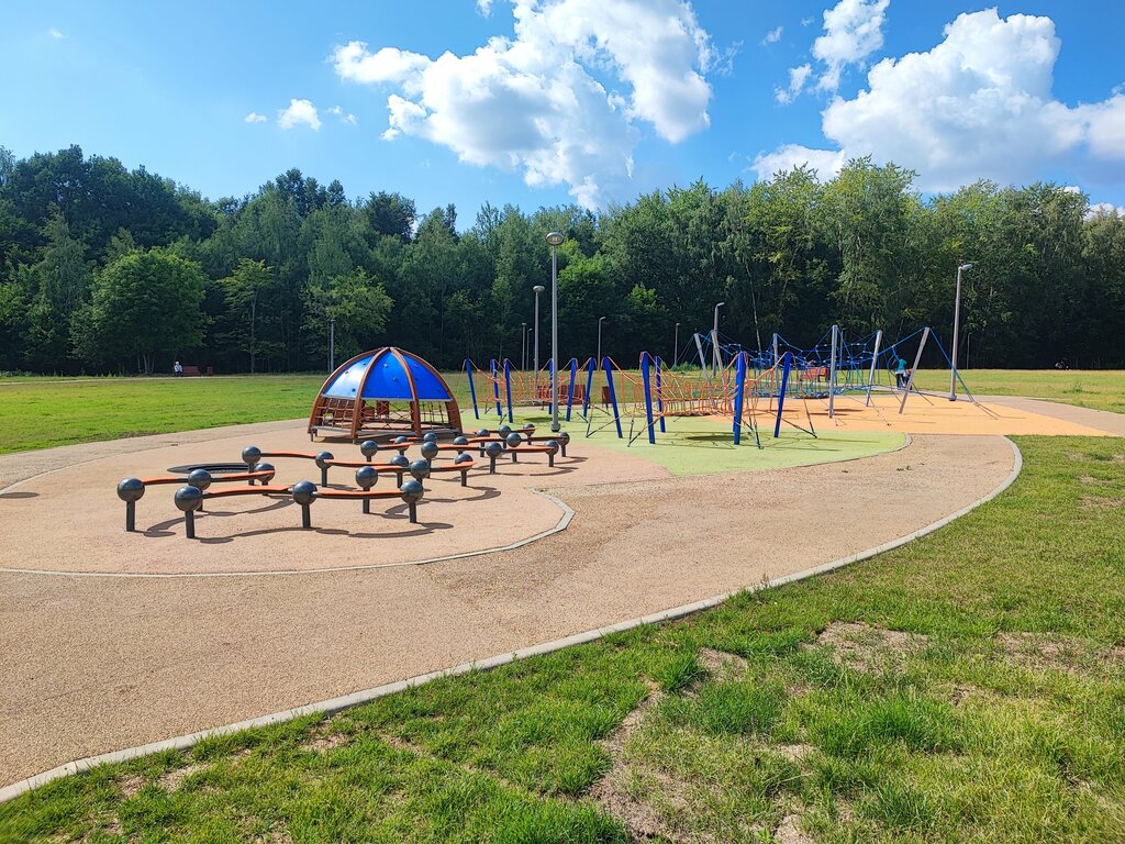 Такое ощущение, что сделали лишь бы сделать и отчитаться, а по факту всё как обычно... Площадка очень бедная, лавочке нет, детских домиков, горок тоже, есть 2 батута и какие-то лазалки. Дальше в лесу есть классные площадки и для скейта и с тренажёрами, но эта площадка исключение! Она больше подходит для выгула собак, которых как раз там не мало, нежели для детей! Можно ведь сделать детскую площадку полноценную, поставит несколько беседок, зоны барбекю и тд. Подряды дело тонкое!
