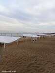 Отличный пляж- смесь крупного песка, гальки и ракушечника))) были в начале сентября- была волна и потрясающие закаты))) есть кабинки переодеться, на пляже много лежаков)))
