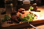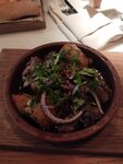 Цыплёнок почмереульски, оказался 1/4 от целого цыпленка. Да ещё такой сухой, что его можно было только обсасывать.). Кусать там нечего, кости и кожа. Мумия цыпленка На вопрос к официанту, почему так? официант поведал сказку, "что так должно быть." таков рецепт.. К сожалению, я не мог поверить "сказочнику" так как и ранее в других грузинских ресторанах заказывал данное блюдо, и цыпленок, был именно "целым цыпленком, сочным и насыщенным специями". Это как вместо хлеба, принести сухари и рассказывать, что это так и должно быть. Но борщ не плох. Жареные хинкали, вообще не зашли, ощущение что их жарили во фритюре