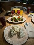 Очень уютно и атмосферно. Приятная фоновая музыка. Очень вежливый персонал. Хинкали просто пушка. Очень вкусные. Также заказывали овощи и рыбу на гриле. Пальчики оближешь. Ценник как в ресторанах по городу.