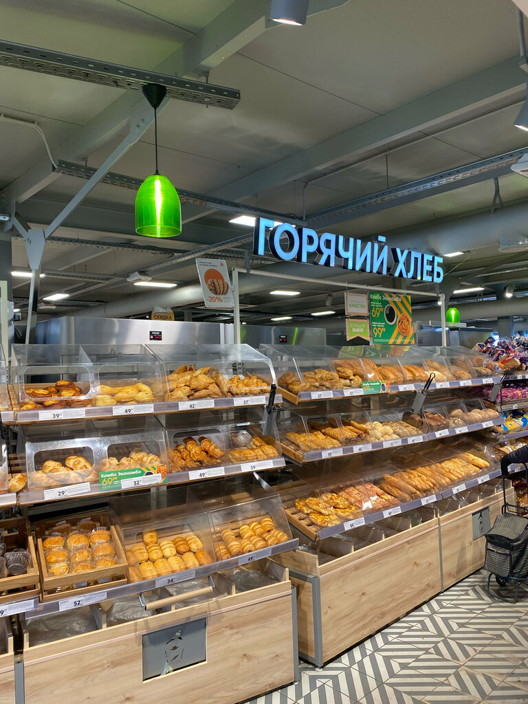 Люблю этот магазин больше остальных. За 2 месяца ни разу не было такого чтоб в магазине было грязно или плохо пахло. Свежая выпечка. Хороший ассортимент по позициям которые являются моими фаворитами. Есть кассы самообслуживания. Хожу сюда, хотя есть пятёрочка гораздо ближе к моему дому.