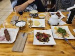 Вкусная национальная кухня, порции большие, подача красивая к еде претензий нет. Время подачи давольно быстро. Ну а теперь над чем им стоит еще поработать: официанты часто упускают часть того, что ты заказал в основном мелочи (лепешку, соус и т.п.) или объяснить что за блюдо видимо это проблема языкового борьера, оплату приходится производить по переводу, а связи в этом месте нет, или приходится наличку снимать.