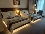 Отдыхали в этом отеле в октябре 2025 большой компанией. Разместили сразу по приезду около 12 часов утра. Персонал молодой, приветливый. Завтраки в ресторане на высоком уровне. Достаточный выбор блюд. Отдельное спасибо за йогурты и пельмешки. Дети были в восторге. Доступ в бассейн, баню и хамам целый день с 8 утра до 10 вечера без ограничений по количеству раз. Для детей до 8 вечера. Номера у нас были разного класса, но всем понравились. Довольно просторные, есть всё необходимое. В отеле очень тепло и комфортно. В ресторане современный дизайн, хорошее кофе в баре, но маленький выбор пива. Расположение самого отеля хоть и не в самом центре, но довольно недалеко. Удобный подъезд, есть парковка.