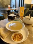 Зашли утром на завтрак, людей почти никого не было. Шакшука на твёрдую четвёрку - нам не хватило специй, но тут без претензий, видимо свой рецепт. Порция кстати довольно объёмная. А вот заатар очень понравился, впрочем как и капучино