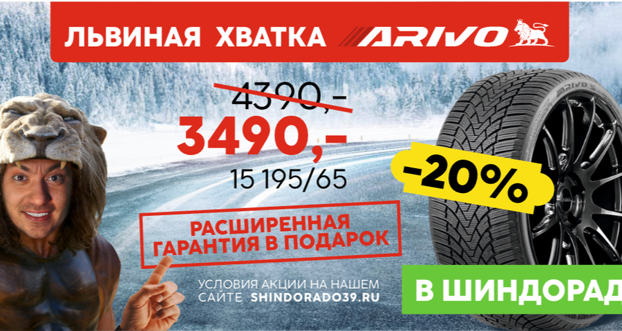 Купите шины Arivo со скидкой 20%. Расширенная гарантию в подарок