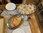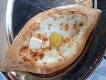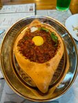 Заказывали хачапури по-аджарски. Очень вкусная, большая) Ожидание не очень долгое, но не прям быстрое. Думаю зависит от количества людей. Когда мы были, была практически полная загрузка. Персонал вежливый. Достаточно уютное место.