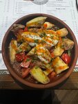 Отличное место чтобы отдохнуть после долгой прогулки одному, также подойдёт для семейного отдыха или дружеских посиделок. Интересный интерьер. Можно долго рассматривать картины на стенал, глиняные кувшины, тематические орнаменты на потолке. Отмечу удобные стулья с подлокотниками и широкие и чистые столы, на которых всегда есть салфетки, соль сахар и зубочистки. Очень доброжелательный и приятный персонал. В мень присутствуют разнообразные блюда, которые придутся по вкусу каждому. Вс еда готовится быстро, и вкусно. Могу отметить ещё интересную посуду, например глиняная чашка, в которой подавался крем-суп из тыквы с беконом. +В заведении присутствует бесплатный интернет, к которому не составит труда подключиться. Очень рекомендую к посещению