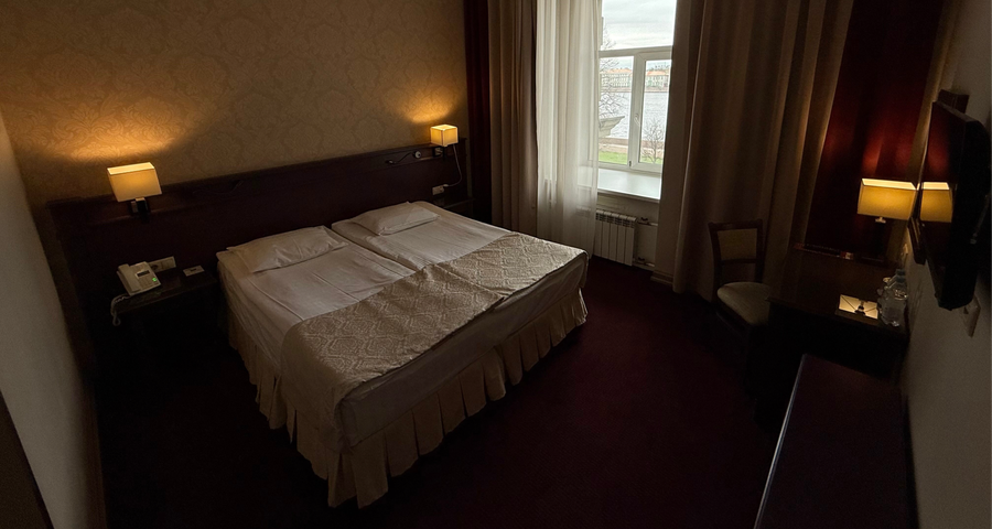 Отдыхали 4 дня в культурной столице, выбор упал именно на данный отель, так как необходимо было максимально близкое расположение к дворцовому мосту, набережной, дворцовой площади. Номер чистый, уютный, все душевые принадлежности имеются. Уборка ежедневная. Кулер на этаже, и по бутылочке воды приносили каждый день. Очень порадовала зона душа, не просто кабина (которую я не люблю, то слив не работает как надо, то дверцы не закрываются), а отгороженная часть ванной комнаты. Не надо залазить в неё, а потом вылазия,ждать, что ты навернёшься. Пол не скользкий и с подогревом ☝️. Кондиционер в номере, огромный шкаф. Брали номер с включенными завтраками, что бы по утрам не бегать и не искать, где поесть. Шведский стол очень-очень не плохой. Даже мужу зашло, который очень привередливый к еде. В следующий раз только сюда. Спасибо огромное за отдых всему коллективу этого чудесного отеля.❤️