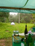 Возвращаемся домой, хочу поделиться впечатлениями. База отдыха очень понравилась. Уютный домик с душем и туалетом, что для меня принципиально, а в этих краях редкость. В домике есть все необходимое и даже больше: продумана каждая мелочь, чтобы гостям было удобно. В спальне 2 комфортные кровати, свежее белье и полотенца, дизайнерский светильник на подоконнике, очень милый. В кухне куча шкафчиков и полочек, микроволновка, чайник, холодильник отлично держит температуру, полный набор посуды: чашки, стаканы, тарелки глубокие и мелкие, ложки-вилки-ножи, есть даже разделочная доска, что меня удивило, обычно на турбазах их нет, возим свою. Возле домика мангал, заботливо приготовлены шампуры и решетка для гриля, что тоже редкость, обычно шампуры приходится брать напрокат или мастерить из веток, если в прокате нет, а пойманную рыбу надо как-то пожарить. Рядом с мангалом уличная мебель: стол, кресла и гамак. У каждого домика свой гамак, можно дремать и слушать лес. Лес - полный восторг: сосны, белый мох, можжевельник и цветущий вереск, мечта и сказка. Озеро большое, но сверху хорошо прогрелось, купаться одно удовольствие, дно песчаное. Ещё мне понравилась веранда под крышей нашего домика, всю ее прелесть я оценила, когда вечером муж отправился рыбачить, а я расположилась на веранде перебирать 3 ведра собранных лисичек. Накрапывал дождь, а на веранде красота. В общем, отличное местечко, рекомендую. Отдельно хочу поблагодарить администратора Сергея и собачку Герду за заботу и круглосуточную охрану :)