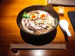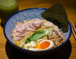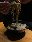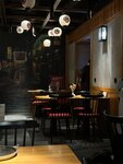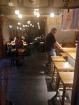 Зал средних размеров. На вечер стол лучше забронировать заранее. Обслуживание быстрое. Но потом официанта надо искать, подзывать. Скорость подачи блюд довольно быстрая. Лимонад шисо-личи - немного странный. Вкус травянисто-сладковатый. Лимонад сделан из пюре. Тонкоцу мисо рамен - довольно густой рамен. Мисо паста довольно крупными фрагментами. Когда попадает в ложку - приятный вкус мисо. Лапша кажется слегка разваренной. Тан тан мен - бульон с остринкой в конце. Очень мало мясного фарша. Лапша имеет неприятную "пыльную" текстуру. Томаты кимчи - соленые помидоры без кожицы в маринаде кимчи. Ощутимая острота. Гюдон с телячьими щёчками - щёчки растомили, что аж тают. Соус как будто загустили крахмалом - остывая превращается в желе.