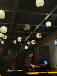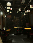 Темно, красивое оформление, чисто. К обслуживанию нет вопросов, приносят быстро, официанты вежливы, подсказывают. Но по мне, кухня слабая. Я ела рамен вкуснее, а точнее лучше доведен до вкуса. По мне он был пресный. Ела свинину с рисом, вот ее бы тоже было не плохо довести до вкуса. Мне не хватило вкуса.