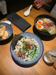 Плюсы: Интересный дизайн, хорошее обслуживание, быстро готовят, очень вкусно, имеется выбор большой или стандартный рамен. Минусы: Дорогое удовольствие, но оно того стоит 😁