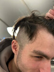 Мастера попросили убрать молодому человеку все короткие волосы пол линии, чтобы остались только длинные, которые можно убирать в хвост. Я даже не знаю как описать эту стрижку… Деньги на ветер, придется идти исправлять этот ужас.