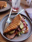 Место понравилось. Заходили сюда позавтракать. Вкусно, уютно, красиво, разнообразное меню. Тут каждый найдет себе вафлю по вкусу: на разном тесте, с всевозможными начинками (лосось, бекон, сладкие начинки и т.д.). При этом в меню есть и различными привычные блюда в необычном исполнении: скрамбл или яйцо в других различных вариантах на вафле, овсяная каша по нестандартному рецепту с добавками из курицы и грибов и другие. Некоторые стандартные блюда в виде каш, сырников, супов пюре, салатов тоже присутствуют, но сюда, конечно, приходят не ради них) Одним словом, место хорошее, рекомендую!