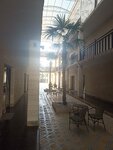 Весна отель атриумного типа, красивый внутри: где вход там и окно, причём в него Вам смотреть не придётся, так как его надо всегда занавешивать. По факту в номерах нет настольных светильников. Тепловая завеса внутри покрыта плесенью. В санузле плесень даже внутри провода фена. Дверцы мебели в санузле размокли по краям. Зеркало облезло, полочки нет, а кронштейны торчат. Розетка болтается. Вид снаружи на отель на фото абзац. С другой стороны два котлована под застройку, в сырую погоду оттуда летят комарюги. Ночью там жгли траву и всё тянуло в номера. Берег изрезан волнорезами, рядом технический порт, много бездомных голодных собак