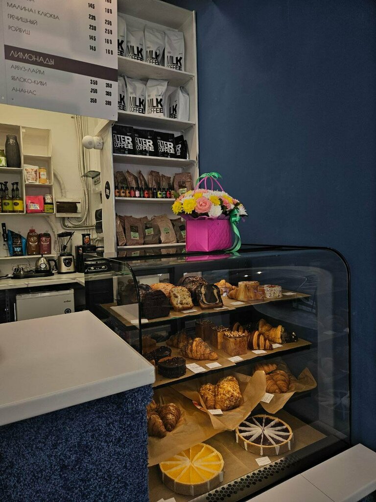 Наконец-то в нашем районе открылось отличное место! ✨ Очень уютно, чисто и аккуратно. Дизайн — это просто взлет! Все в нежно-голубых тонах,которые создают спокойную атмосферу и притягивают. ☕️ Кофе: Пробовала латте "Фисташка" — это любовь с первого глотка! Огромное спасибо Яне за профессионализм и чудесное настроение. 🥐 Выпечка отдельный восторг — круглые круассаны с малиной и фисташкой. Очень вкусно! Всем соседям рекомендую заходить за уютом и гастрономическим удовольствием!