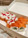 Очень вкусные роллы. Филадельфия из набора Премиум с хорошими "кусманами" красной рыбы, рыба обладает хорошим и насыщенным вкусом. Даже на ролле Филадельфия лайт хороший кусок рыбы, это вам не "рыбный пергамент" как бывает в других доставках, а действительно хороший мясистый кусок. Запечённые роллы с тортильей - моё уважение) Роллы с креветкой из набора "Премиум" тоже класс, начинки очень много. Будем заказывать здесь однозначно!