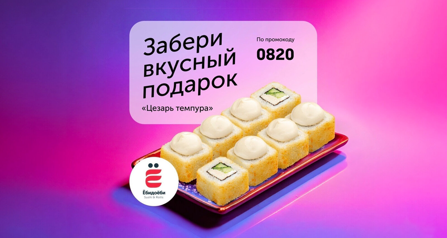 Ролл "Цезарь темпура" в подарок по промокоду 0820!