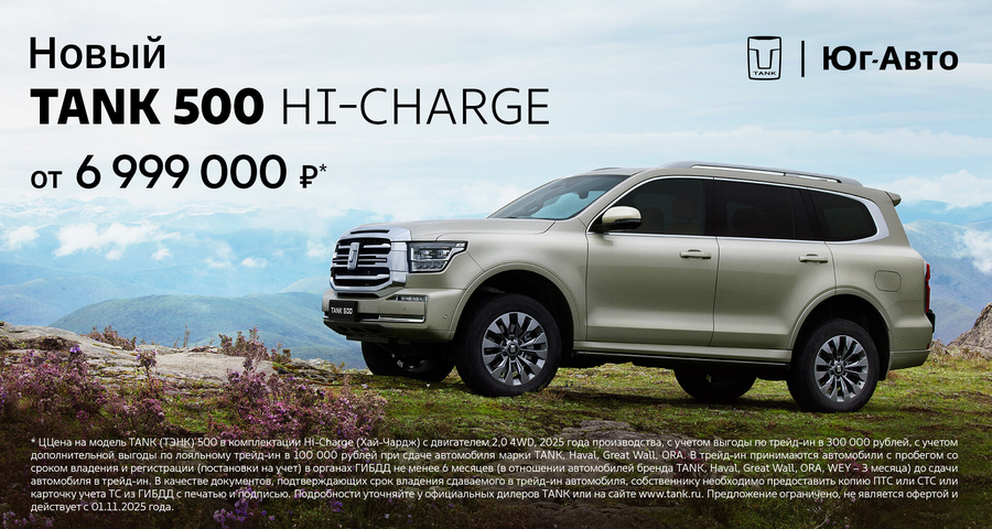 Новый TANK 500 Hi-Charge от 6 999 000₽* в Юг-Авто!
