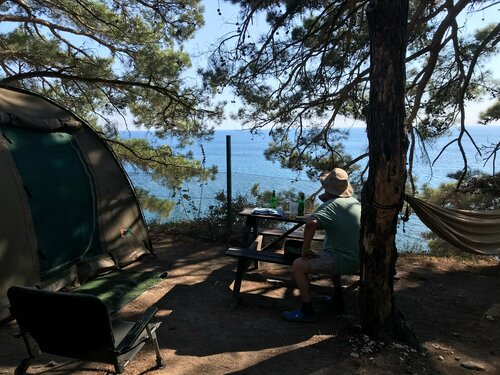 Очень уютный кемпинг! Есть отличные полянки с видом на море. На территории душ и туалет. Всё чистое и ухоженное. Есть магазинчик с необходимыми продуктами. Морозильный шкаф для хладоэлементов. Радушный персонал. Будьте готовы к тому, что навигация и телефоны в том месте не работают!