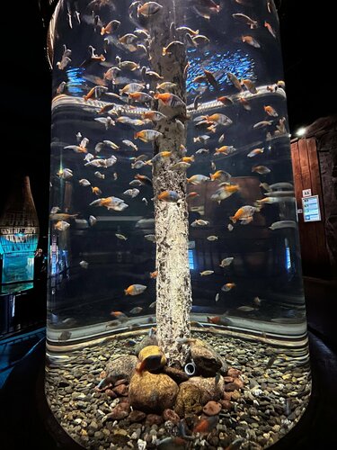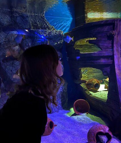Закрыт на ремонт главный тоннель((не попали, увы🥹 а так, много аквариумов, террариумов, глаза разбегаются, что очень приятно👍🏻 в некоторых залах ну уж очень темно, освещение между проходами и на лестницах хотелось бы сделать немного ярче😁 Поток людей большой, много родителей с маленькими детьми, туристов и школьников