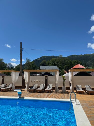 Отличное место, расположение удобное, много красивых мест рядом. Гуляешь и наслаждаешься природой.Персонал отличный, всегда помогут и подскажут, уборка каждый день, полотенца и халаты выдают. Завтраки очень вкусны и разнообразные, в меню тоже много интересных позиций. Вечерами проходят мероприятия и просмотр фильмов, приятно смотреть на горы и быть в такой атмосфере. Есть бассейн с подогревом, всё чисто и аккуратно. Номера чистые и комфортные. Нас, разумеется, покорили не только виды , но и кошки, особенно пельмешка, которая всегда готова погреться у вас на руках или почитать с вами книгу 😍😁были в разных местах, но вы нас точно покорили, однозначно приедем ещё к вам в гости и будем советовать друзьям🔥