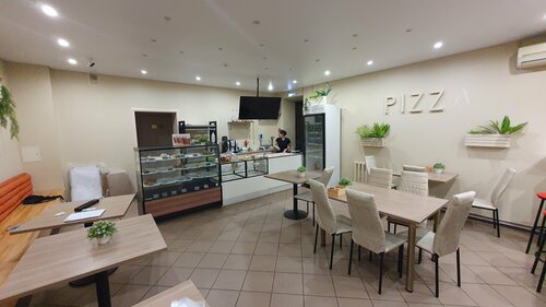 Спокойная просторная пиццерия в тихом районе. Работает до поздна с самого утра. Большой выбор пиццы. Приветливый и дружелюбный персонал. Народу пока мало.