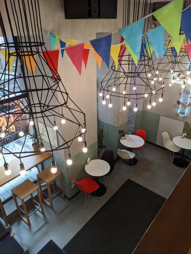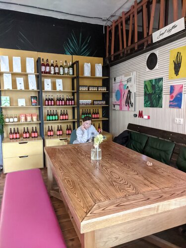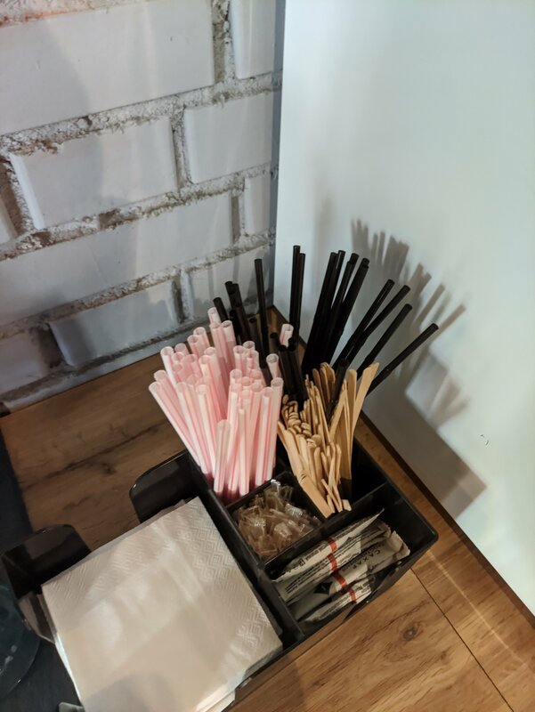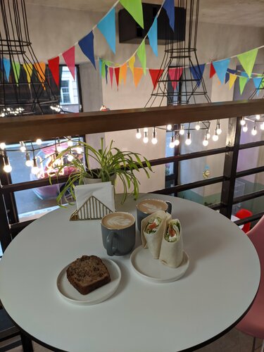 Уютный кафетерий на Архангельском Арбате, вкусный кофе, однако трубочки и палочки не в бумажной упаковке, большой минус для меня, не гигиенично