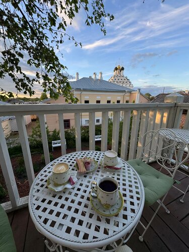 Мне очень понравилось кафе своей уютной атмосферой. Советую посетить вечером перед закрытием или утром на завтрак, чтобы насладиться вкусным кофе, уединением места и видами в тени деревьев. При кафе или наоборот, есть музей пастилы. Обязательно загляните туда, купите домой разной пастилы.
