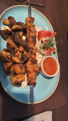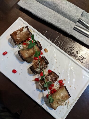 Шашлык внутри сырой! Причем не вкусный от слова совсем. Рулетики из баклажаны не свежие и сухие ((( Готовят на отвали, если хотите просто оставить деньги и уйти голодным! Велком !