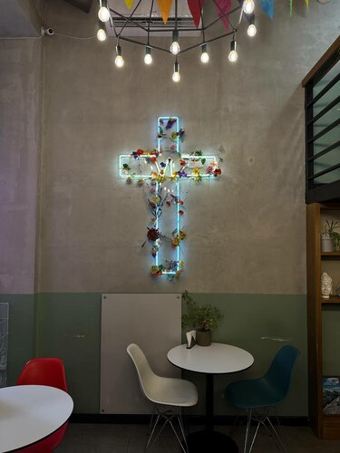 Вкусный кофе, один из самых вкусных во всей Москве, по сравнению c Старбакс, Surfcofee. Банановый кекс просто восторг, тает во рту. Рекомендую эту кофейню. В этом районе очень красиво.