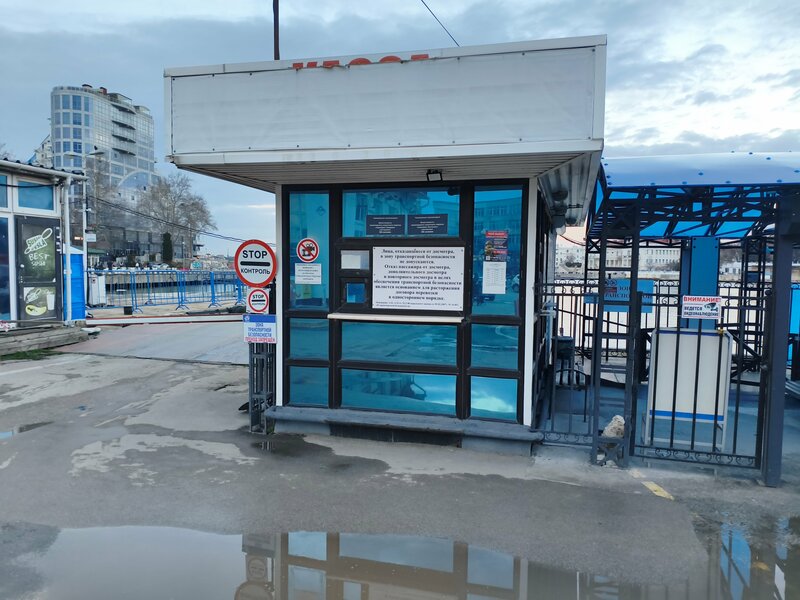 Место причала парома, переправа через Севастопольскую бухту. Возможно и на транспорте.