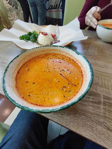 Что могу сказать, если Том Ям Ваше любимое блюдо то возможно и можно зайти в это заведение. Но... Есть масса вопросов к владельцам. По порядку: на многие моменты можно было бы не обращать внимания, но когда официанты на вопрос - Что порекомендуете ухмылясь пожимают плечами и переглядываются между собой, то это уже вызывает вопросы. Ну, а далее уже начинаешь придираться.... Паутина над стойкой, грязь и пустые коробки по углам, грязные окна, всё в жиру и налипших субстанциях область над плитой, облупившаяся штукатурка грязь и т.д. А по финалу, с грохотом брошенная официанткой, тарелка с салатом на стол , от чего содрогнулось всё заведение, то уже настроение портится окончательно. И начинаешь искать к чему же ещё придраться... Тройка только за Том Ям и то к нему есть некоторые вопросы....
