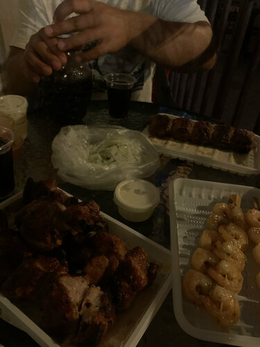 Один из самых вкусных шашлыков, что я ела в жизни! Отдыхали 11 дней и дней 8-9 брали тут мясо, рыбу, овощи. Всегда было вкусно! Моя личная любовь - креветки на шпажках! Ребята супер позитивные, успехов им в сезоне! Брали на вынос всегда, сидеть было шумновато)
