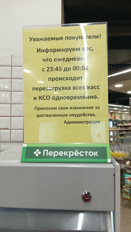 Приходишь купить продуктов,- и 20 минут (!!!) стоишь ждешь, пока кассы перезагрузятся. Видимо, кассы у них на Пентиум 286 работают. С кассами самообслуживания тот же бардак. Стыдобище! Ужаснейшие неуважение к клиентам.