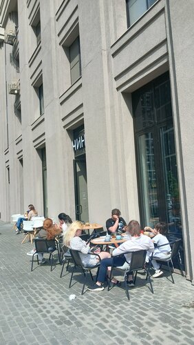 Плюсы: довольно вкусно готовят, не долго ждать заказа пришлось. За вкусную еду - "5", хоть в целом заведение на "4". Потому что минусы: кафе находится на закрытой территории ЖК,- попасть можно только через турникет с охраной (по запросу "Хотим пройти в кафе по адресу Берзарина 28А"- впустили свободно, но это ж какой барьер для интровертов!). От "террасы" там только махонькие столики на улице, без навеса, тента, без имитации изгороди,- от солнца жарко, от дождя мокро, от ветра всё сдувает. Ну зато в поле видимости детская площадка, где дети чилят, ибо им сидеть в кафе неинтересно. Внутри штук 5 маленьких столиков, занятых постояльцами(засидельцами)))-фрилансерами. Если желаете посетить кафе компанией даже из 2 человек, лучше забронировать столик у стены с диванчиком.
