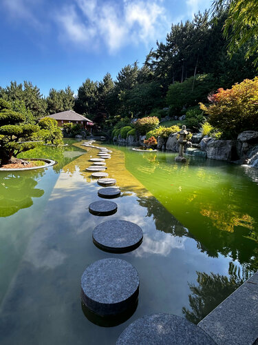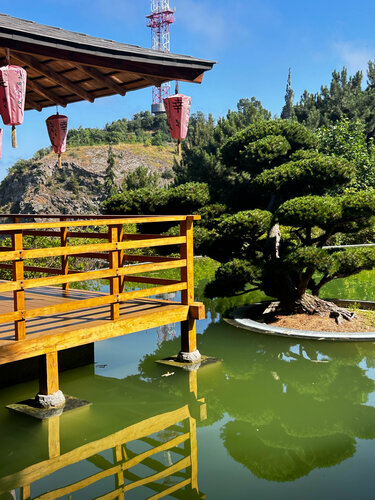 Купив билет в парк Айвазовского, нажарившими на солнышке , мы попали в верхний парк - Японский сад. Стоимость входа допом 600 р, наличными ❗️.