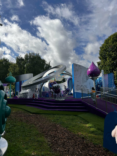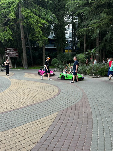 Свежо и просторно , много локацией, где задержаться : рисуют, поют, гадают, можно покатать детей на машинках на пульте и самостоятельно, аттракционы на любой вкус, много растений очень интересных и ухоженные клумбы.