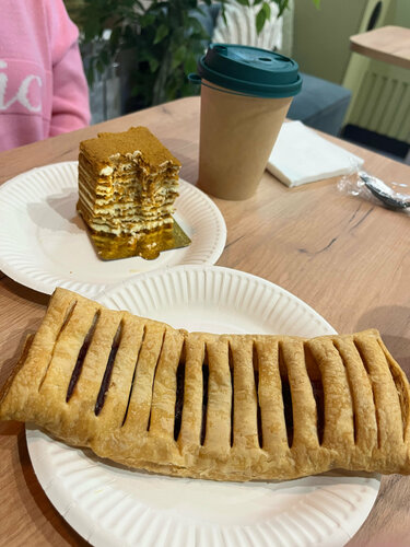Ну как обычно) я же не могу просто сказать что да или нет) Так вот) Был холодный серый Московский вечер плюс праздник День народного единства) И так случилось что на перекрестке трех дорог Пионерской, Калинина и Луговой нам сверкнул яркими огнями уютная домашняя кофейня) почему домашняя? Да потому что надо такие кофейни у дома ставить) Уютно) вроде и места мало но мило) и как то по домашнему классно) Спасибо баристе за вкусный пунш из голубики) (я не особо люблю кофе поэтому пью вкусный чай) Латте с теплыми пряностями тоже вкусно но его пил не я) О-о-о-о Медовик вкусный Штрудель тоже очень зашел) Мои рекомендации, надеюсь данное заведение у нас надолго)