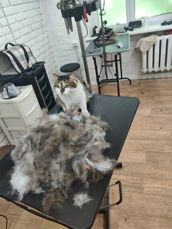 Мастер большая молодец, спасибо ей огромное, столько шерсти вычесала, наконец-то дома, на диване и моей одежде больше не остаётся шерсть. Обязательно придем ещё!