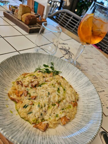 Очень маленькое место, идеально для кофе на 15 минут на улице Внутри душно, абсолютно не клиентоориентированный персонал, хамоватый. Если выходной то сесть встать негде, пришли в 3м и нам предложили металлический столик плюшку за которым поужинать нереально или крайне неудобно! Понравился антураж и фарфоровые артишоки которое украшают перила при входе. Может вернёмся...