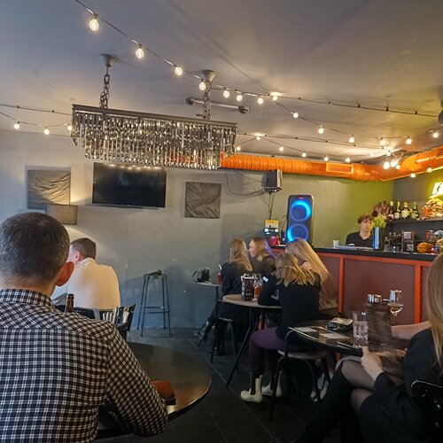 Маленький зал. Меню небольшое. Была на стенд-апе. Уютно. Обслуживание быстрое. Просто бы не пришла. Пиво с закуской не мой выбор.