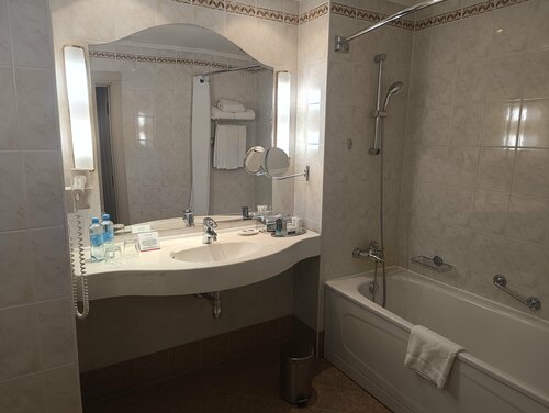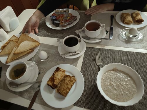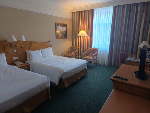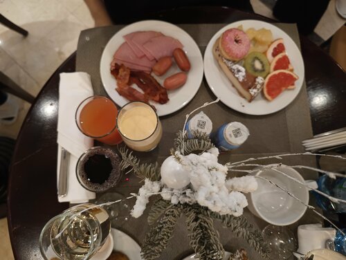 В номере очень тепло, открывали окна. Чисто. Полотенец по 3 на каждого. Расходники: мыло, шампунь, гель для душа. В номере есть чайник, телевизор, сейф, кондиционер, холодильник и фен. Матрасы удобные. Есть дополнительные одеяла. Завтрак один из трёх на выбор. Достаточно вкусно. Кофе из кофемашины.
