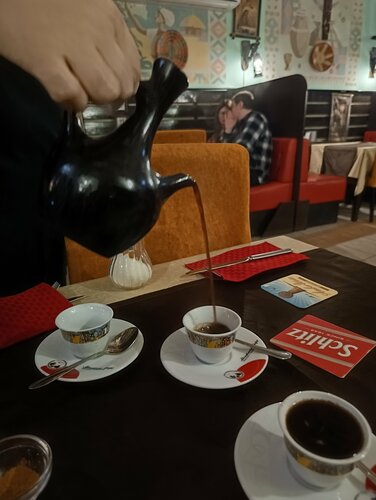 Вкусно. Много мяса😋Цены средние. Многовато народа было в выходной. Недалеко от "Казана". Блюда объемные. Пришлось с собой забрать часть.