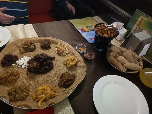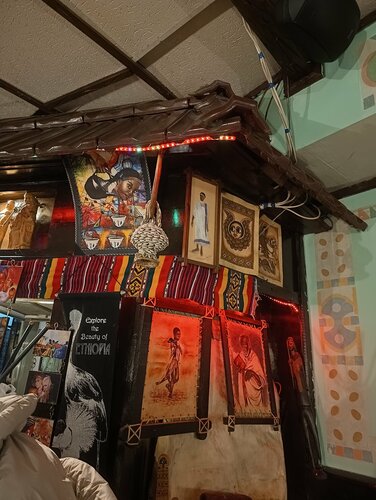 Качество блюд хорошее. Конечно блюда специфичные, европейскому человеку не привычные. Много бобовых, мясо прячется измельчённых овощах. Не все блюда острые, но всё же есть. Можно и картошку фри заказать. Любопытно окунуться в чужой мир. Очень интересный интерьер: экспонаты на стенах, на потолке. В общем понравилось. Как небольшая экскурсия в Африку😊