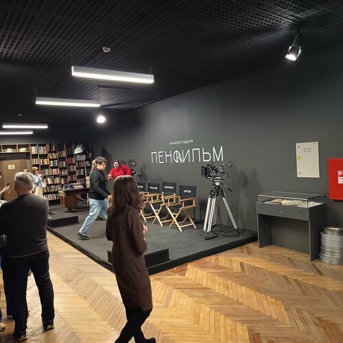 Экскурсию заранее выбрала и оплатила на Афише. Нас набралось человек 40. Разделили на 2 группы. Группы пересекались, толкались по коридорам. Видно было не очень хорошо. Понравились большие павильоны, где на синий фон накладывают после съёмки пейзажи. Экспонатов показывают не много. Чаще сравнивали фото с планшета экскурсовода и оригинал (замок, карета и т. д. Оцениваю на 4! Есть и поинтереснее места.