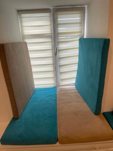 Подушки шикарные! Результат превзошел мои ожидания. Качество материала очень порадовало, отмывается подушка просто мокрой тряпкой. Всё сделали быстро и в срок. Забыли положить крепления, но исправились и подарили супер пуфик) Спасибо большое, рекомендую🥰