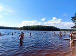 Озеро красивое, в меру большое, в центре большой остров, вокруг сосны и березы, пляж песчаный, заходить в воду приятно. Вода красненькая, достаточно чистая. Плавают утки. Отдыхали с детьми, покатались на сапборде вокруг озера, на удивление в жаркий летний четверг народу было немного. В уединенных местах виднелись палатки. К сожалению, люди оставляют много мусора и кое-где среди деревьев собраны небольшие свалки, это огорчает.