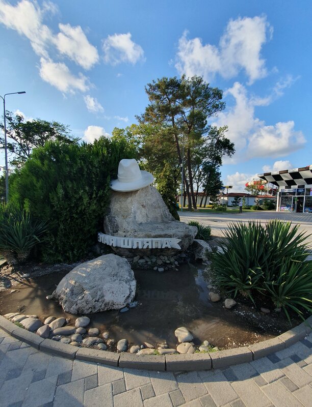 Скульптура Белая шляпа - современный символ города-курорта. У туристов одно из любимых мест для фото. Часто бывают очереди))) Расположена в парке атракционов на центральной аллее ведущей к пляжу. Вокруг чистота, много места для прогулок, даже когда большой поток туристов. Однозначно рекомендую к посещению.